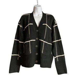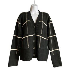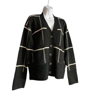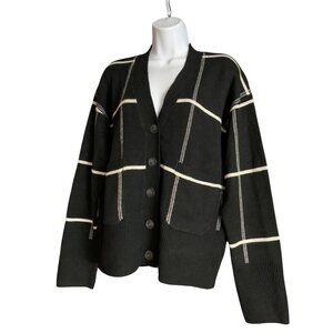 A New Day Womens Black Plaid Button-Up Cardigan Sweater With Pockets Size Small