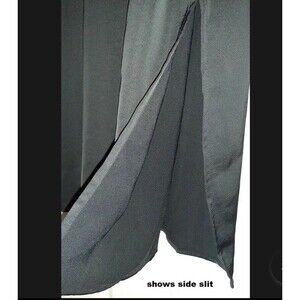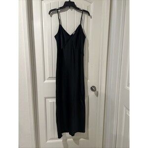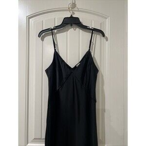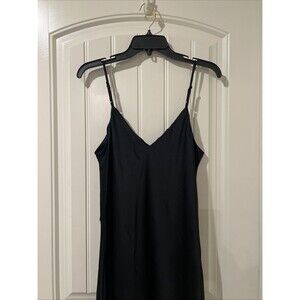Women's Black Silky Slip Dress Side Slit Midi Spaghetti Strap Size Medium with Adjustable Straps V-Neck