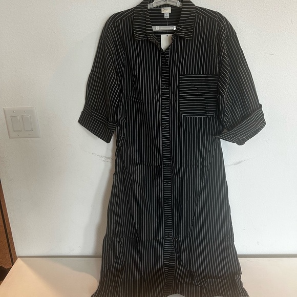 A New Day Women’s Black & Silver Stripped Button Down Dress Size L NWT