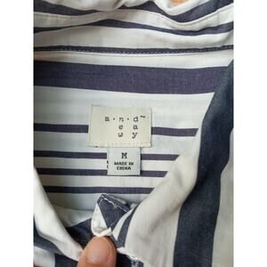 A New Day Women's Blouse Top Button Front Short Sleeve White/Black Size Medium