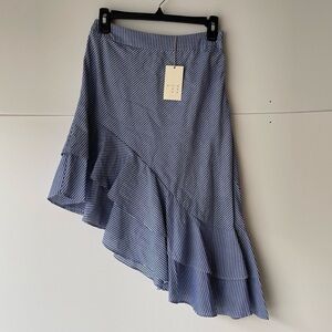 NWT! A New Day Women's Blue Striped High Low Ruffled Casual Skirt, Sz 2