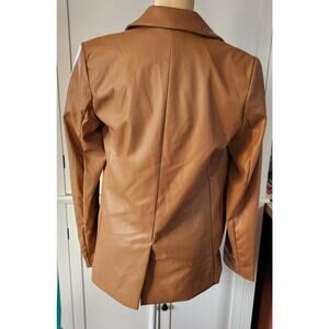 A New Day Women's Brown Faux Leather Relaxed Fit Blazer Jacket Size Small