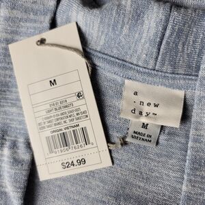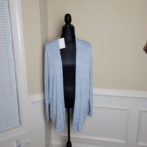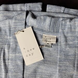 A New Day woman's open knit cardigan, long sleeves. Open neckline, side pockets, fits below the waist, 48% rayon, 48% polyester, 4% spandex, perfect for office &/or cool evening fall walks!! NWT, never worn