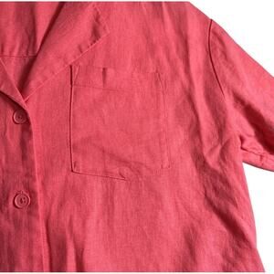 A New Day Women's Coral Pink Button Up Short Sleeve Linen Blend Camp Shirt