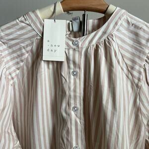 A New Day Women's Cream Striped Puff Sleeve Blouse - Size Large - NWT