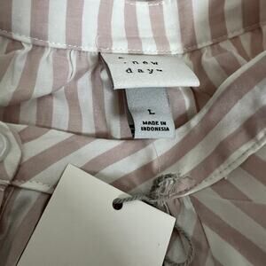 Brand new A New Day women's cream striped puff 3/4 sleeve blouse - size large.