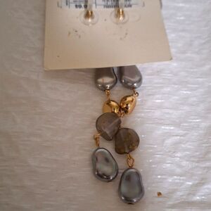This is a cute pair of A New Day pierced earrings with a stud closure. They have some pieces that look like iridescent faux pearls, and some that look like stone. These are 4" long and in very nice pre-owned condition.