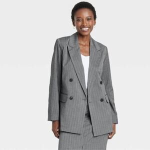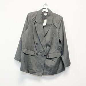 A New Day Women's Double Breasted Blazer Gray Pinstripe Size XL