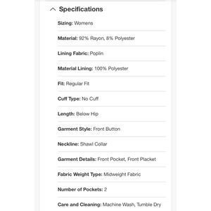 Length: Below HipGarment Style: Front Button