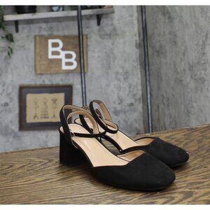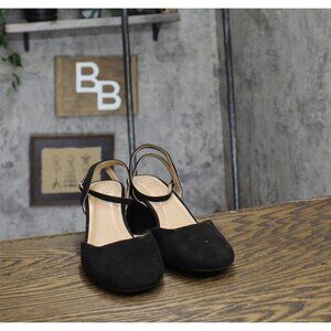 A New Day Womens Faux Suede Low Block Strappy Heels Black 7.5M