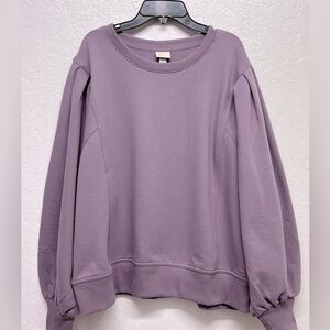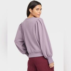 Amp up your cool weather dressing style wearing this Fleece Sweatshirt from A New Day™. This pullover sweatshirt in a solid color makes a versatile layering essential. Fashioned in a regular fit, it features long bishop sleeves for stylish flair. The soft fleece material offers cozy comfort, while the ribbed hem, cuffs and crewneck offer a snugger fit. Slip on this sweatshirt with jeans, ankle pants or joggers for effortless styling options.