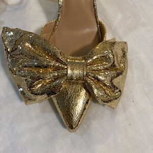 Need a little bling to your shoe wardrobe, gold stiletto is it! The texture is crinkle; very shiny.