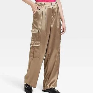 A New Day Women's High-Rise Satin Cargo Pants - Brown Size 2
