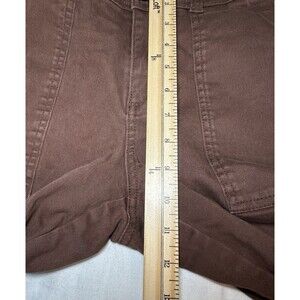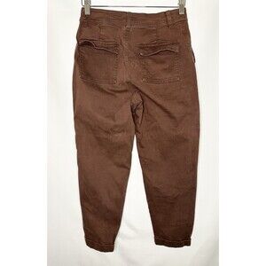 * The pants come in a solid brown color with a stretch fabric for added comfort.