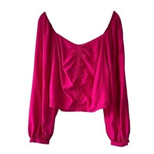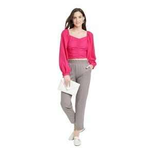 A New Day Womens Long Balloon Sleeve Ruched Front Crop Top, Pink
