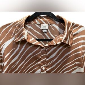 A New Day Women's Long Sleeve Oversized Satin Button-Down Shirt Size Small