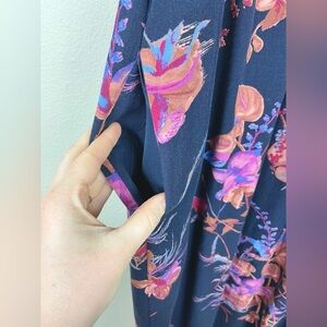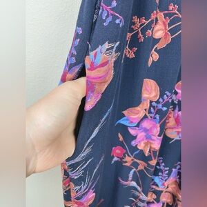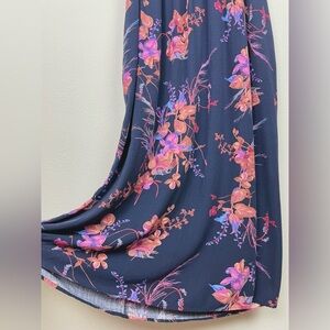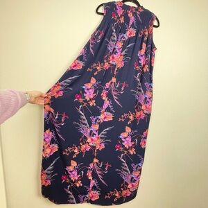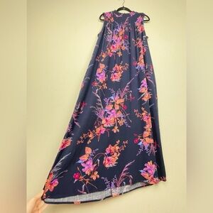 A New Day Women's Medium Floral Navy Sleeveless Maxi Dress Smocked Mock Neck Modest High Neck Pockets Flowy Casual Colorful Botanical Floral