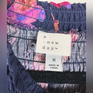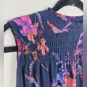 A New Day Women's Medium Floral Navy Sleeveless Maxi Dress Smocked Mock Neck
