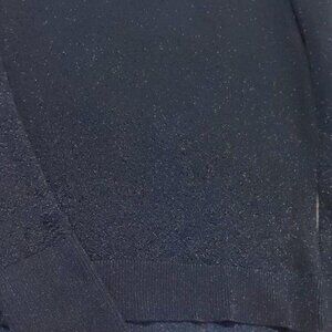 Navy blue sweater with metallic blue thread throughout.