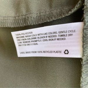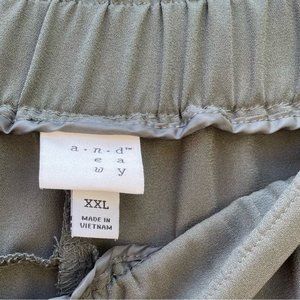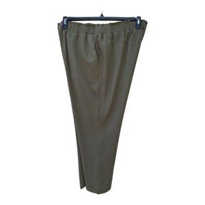 Super breathable khaki green elasticized waistband, pleated, slant pockets & tapered straight leg. Size XXL 19” waist 27” inseam. Preowned in good condition. No rips stains or tears.