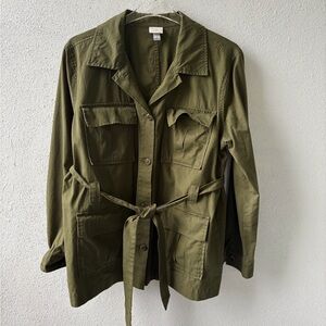 A New Day Women’s Olive Green Utility Jacket Size L Pockets Belted Buttons