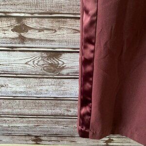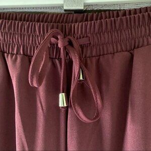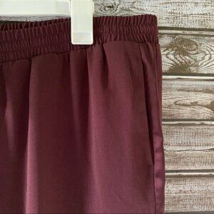 This Pair of Women's Pants by A New Day are a Size XL and are made of 100% Polyester with a side panel that is made of 96% Polyester and 4% Spandex. They are a wine/burgundy color with a drawstring elastic waistband and 2 front pockets. Gently used. Great Condition!