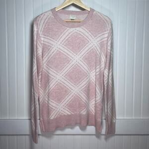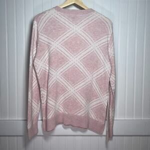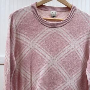 A New Day Women's Pink White Argyle Diamond Pattern Crewneck Pullover Sweater