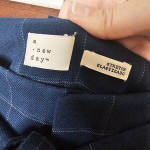A New Day Womens Plaid Pants Size 6 Blue Plaid Stretch Soft Pockets Career Tie
