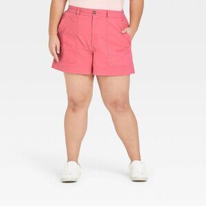 A New Day Women's Plus Size High-Rise Utility Shorts Pink 20W