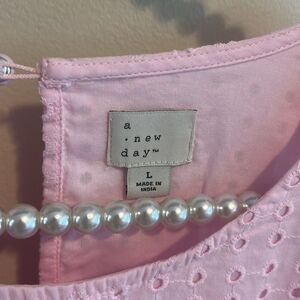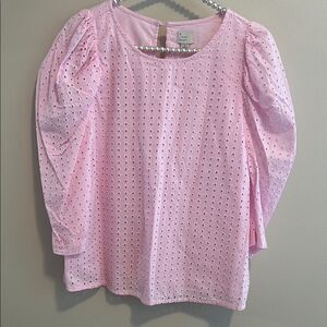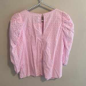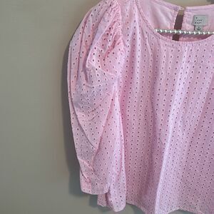 A New Day Womens Puff Sleeve Eyelet Blouse Size L Pink 3/4 Sleeve