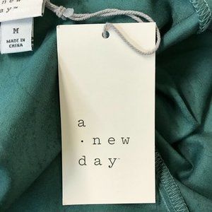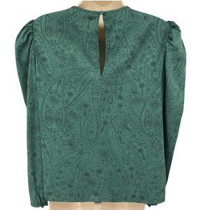 A New Day Women's Puff Sleeve Round Neck Paisley Green Blouse Top Choose S or M