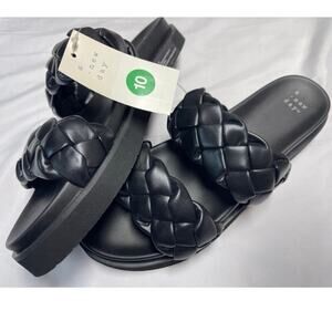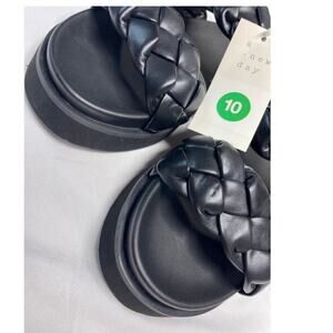 Step into comfort and style with these A New Day Women's Sage Braided Footbed Sandals! These sandals are brand new with tags and come in a sleek black color, perfect for any outfit.
