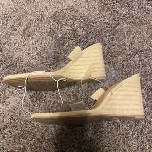 Elegant sandals with clear straps. Comfortable cream sole. Perfect for versatile wear.