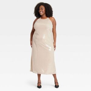 A New Day - Women's Sequin Midi A-Line Dress - A New Day Tan X Tan