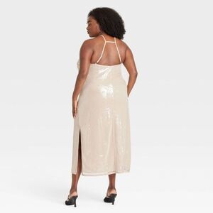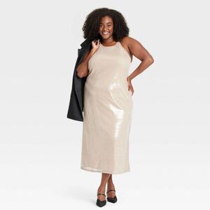 Get ready for the party in this Sequin Midi A-Line Dress from A New Day. Made of recycled polyester, this A-line dress features allover sequins that reflect light for a shimmery look. This midi-length dress has a halter neckline and adjustable spaghetti straps for a comfortable fit. Plus, the slit on the side adds a dramatic touch. A New Day: Style that goes wherever you do.