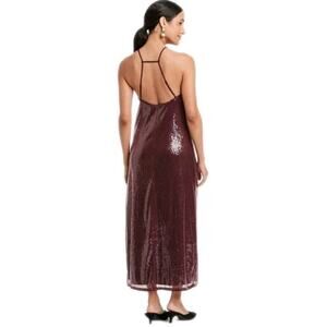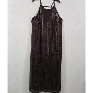 A New Day Women's Sequin Midi A-Line Dress Halter Neckline Side Slit 1X Burgondy
