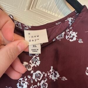 A New Day Women’s Short Sleeve Ruched Midi Shift Dress Floral Burgundy Blue NWT