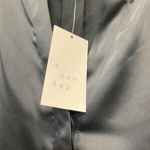 Spruce up your casual-chic look with this Short-Sleeve V-Neck Blouse from A New Day. Made from a lightweight recycled polyester satin fabric, this short-sleeve blouse helps keep you in absolute comfort. It’s designed with a V-neckline with a button-down front, pleated back, and tailored in a relaxed-fit, mid-length silhouette, making it easy to wear tucked in or out with various chino pants, skirts, or jeans for versatile styling.