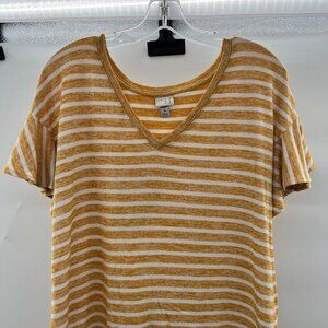 A New Day Women's Short Sleeve V-Neck Striped Top Yellow/White Size Medium