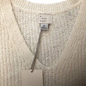 A New Day Women's Sleeveless Relaxed Knit V-Neck Sweater Cream XXL Cotton Blend