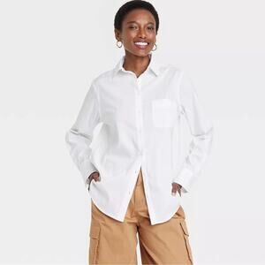 A New Day Womens Slim Fit Boyfriend Tailored Long Sleeve Button Down Shirt Large