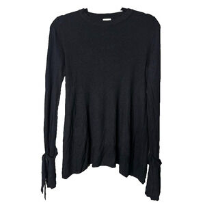 A New Day Womens Small Sweater Black Pullover Tie Sleeve Lightweight Minimalist
