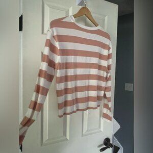 A New Day Women’s Striped Long Sleeve Shirt Peach Rust White Stretch Top Small S