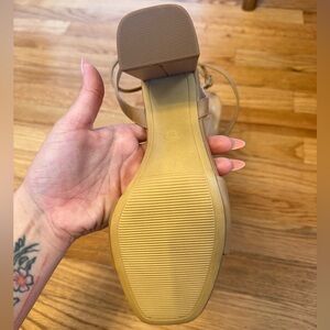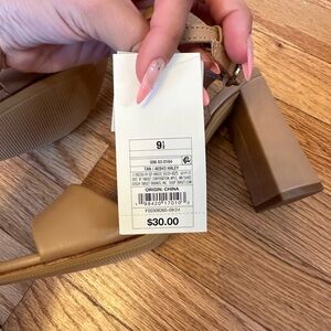 Elevate your style with these chic tan heels from A New Day, featuring a sleek slingback design and a comfortable medium-height heel. The minimalist silhouette with a wide front strap and a secure ankle buckle offers both elegance and versatility. Crafted with a smooth matte finish, these heels are perfect for any occasion.