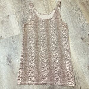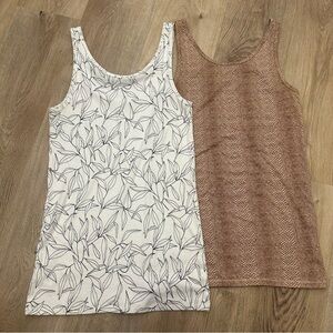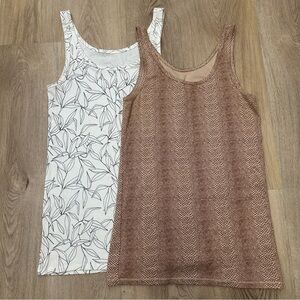 Stylish tank tops from A New Day. One features a white base with a leaf pattern. The other is a textured brown design. Perfect for casual wear.