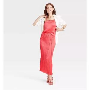 A New Day Women's Textured Crinkle Satin Midi Skirt Coral Pink Size XXL NWT