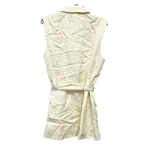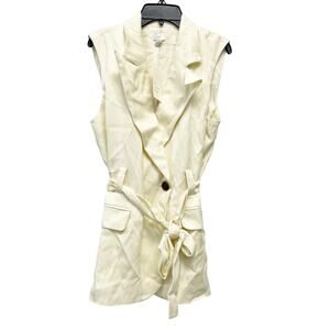 A New Day Women's Tie Front Collared Belted Long Line Vest Cream Size Small