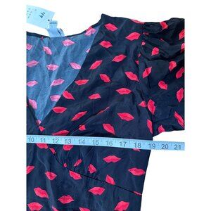 A New Day Womens V-Neck Dress Black With Red Lip Print Size 14