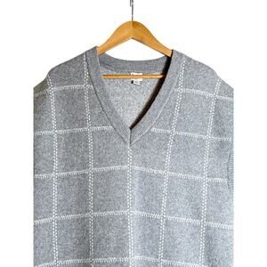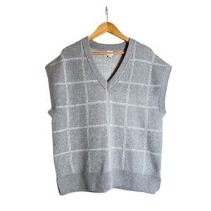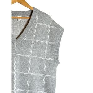 A New Day Women's V-Neck Windowpane Oversized Sweater Vest Size L Gray White