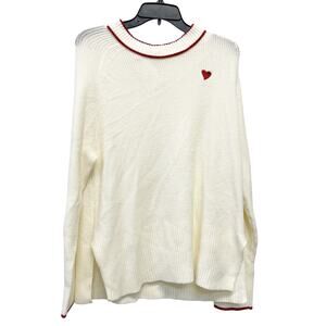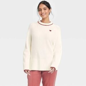A New Day Women's Valentine's Crewneck Pullover Sweater Cream Heart Size Medium